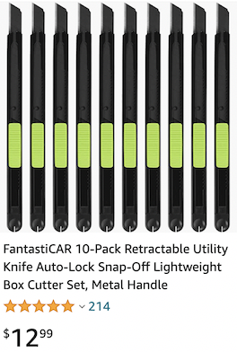 미국도 사람사는 곳인데 당연히 커터칼 팔겠죠. 그런데 이런 커터칼이 좀 비싸게 판매되고 있어요. 아마존에서 대충 비슷한 것들을 찾아봤어요.
