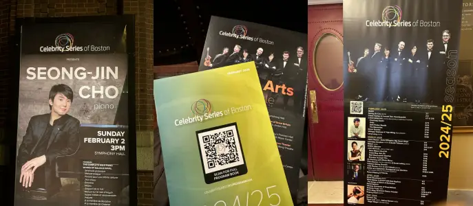 조성진의 연주를 보기 전에 설레는 마음으로 보스턴 심포니 홀의 피아노를 사진에 담고, 팜플렛을 열어봅니다.